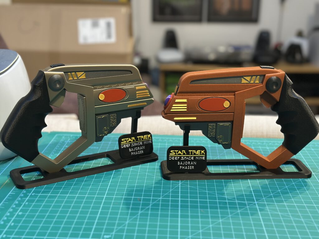Parallel dazu arbeite ich aktuell an mehreren neuen Projekten. Neben der finalen Fertigstellung der Strange New Worlds / Discovery Phasergewehre entstehen derzeit auch einige bajoranische Requisiten. Dazu zählen unter anderem eine Bajoranische Combadge, ein PADD sowie ein Bajoranischer Phaser.